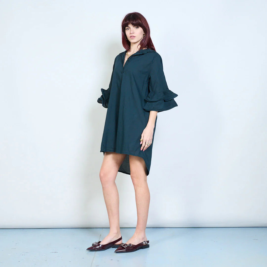 Abito chemisier corto con maniche a balze