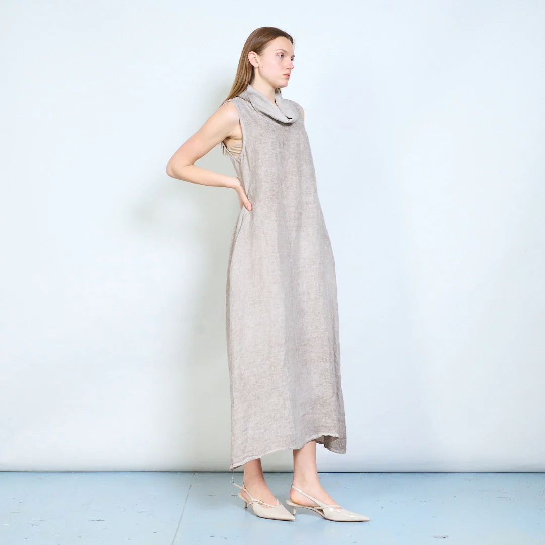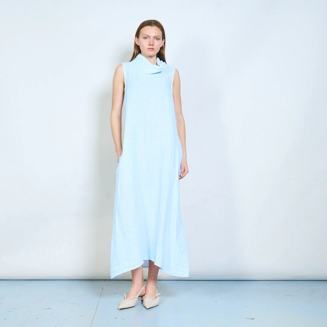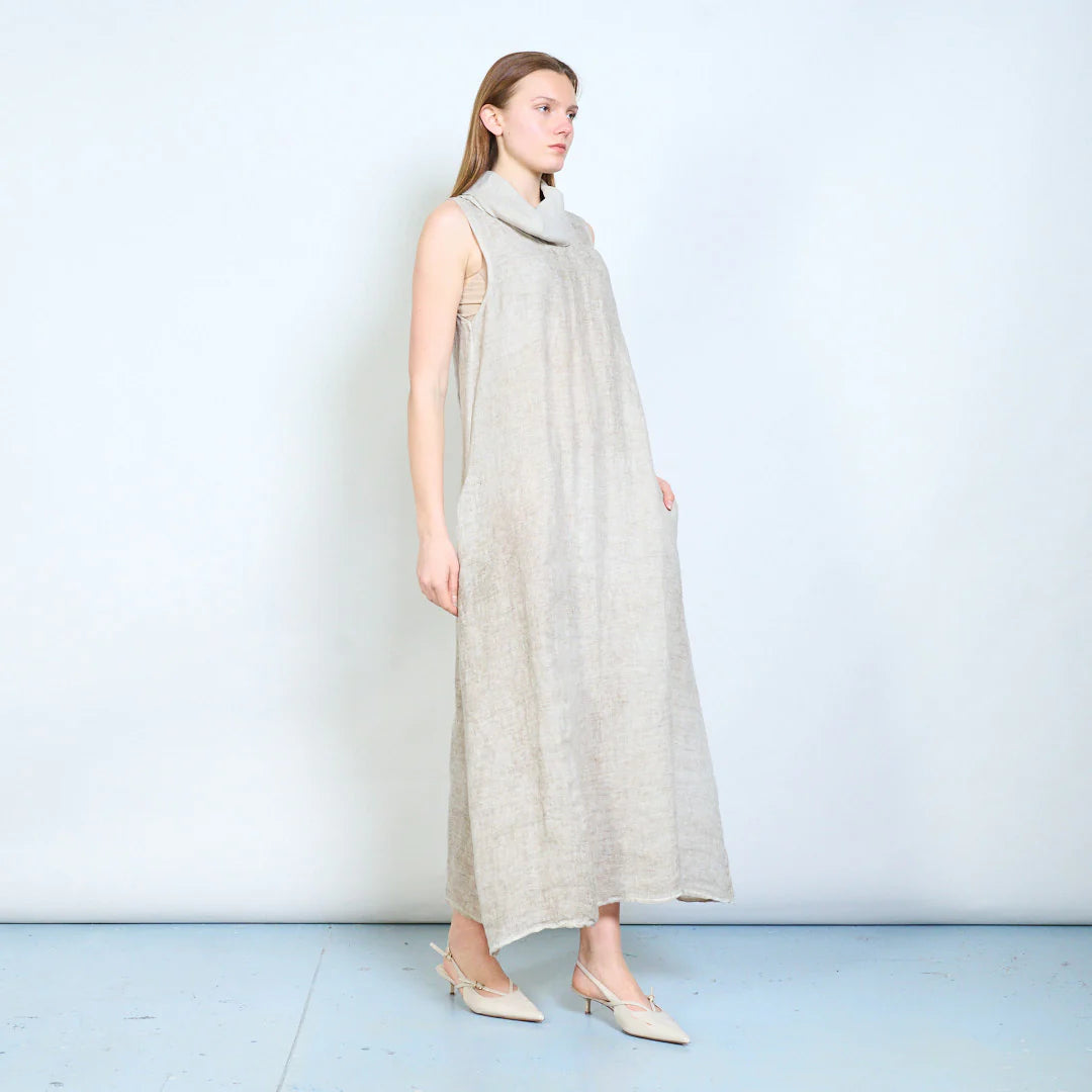 Abito lungo dal design essenziale e moderno, caratterizzato da una linea pulita e da un elegante collo morbido.