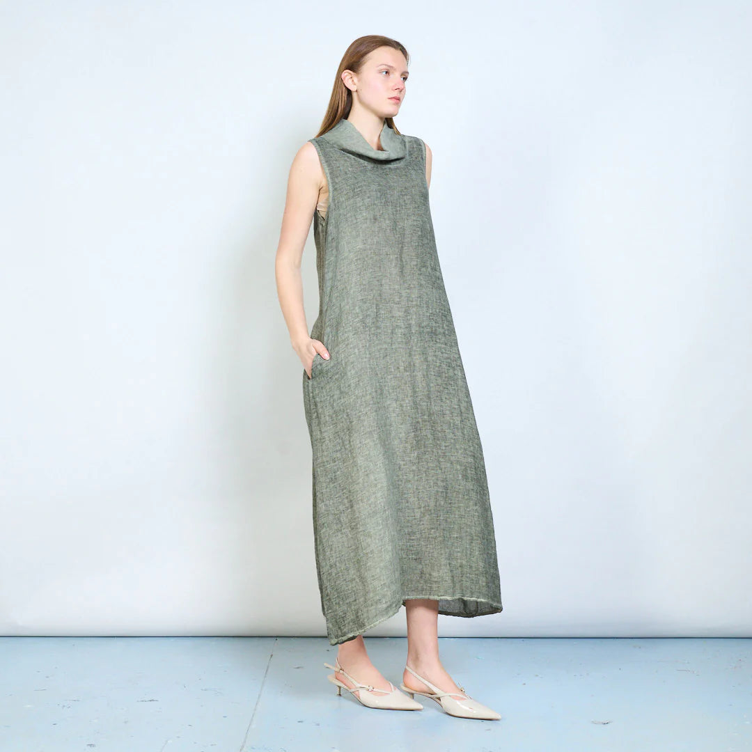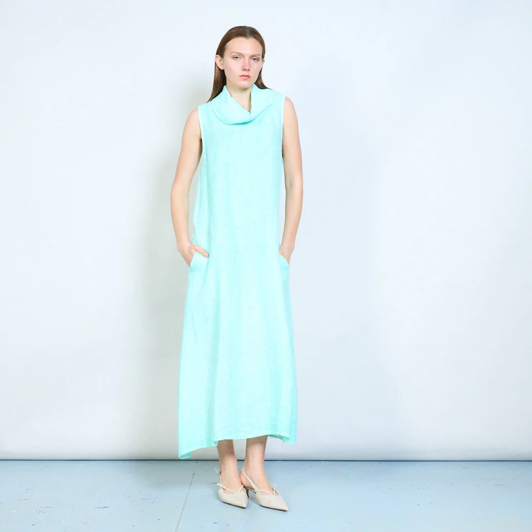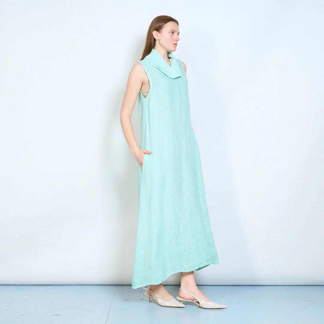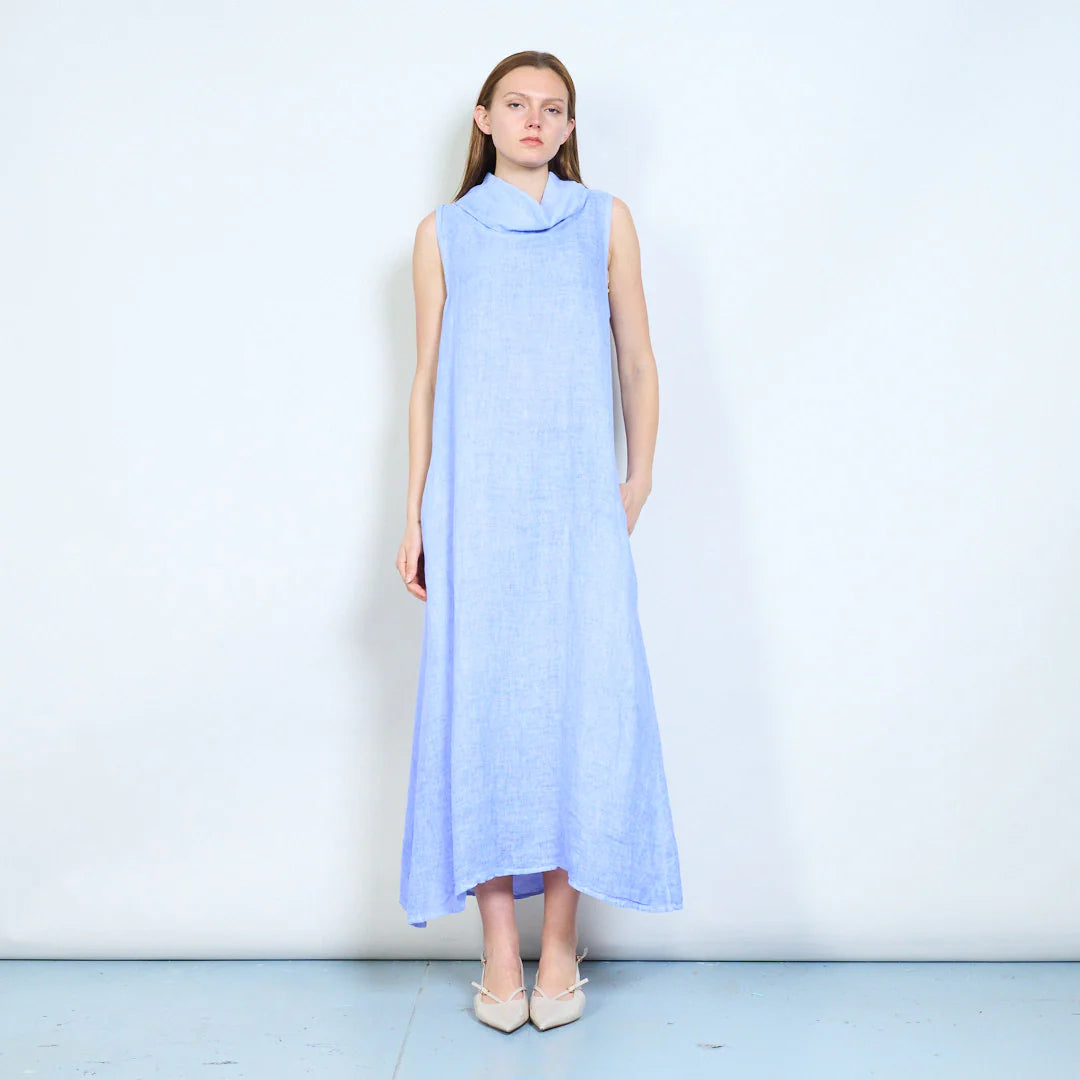 Abito lungo dal design essenziale e moderno, caratterizzato da una linea pulita e da un elegante collo morbido.