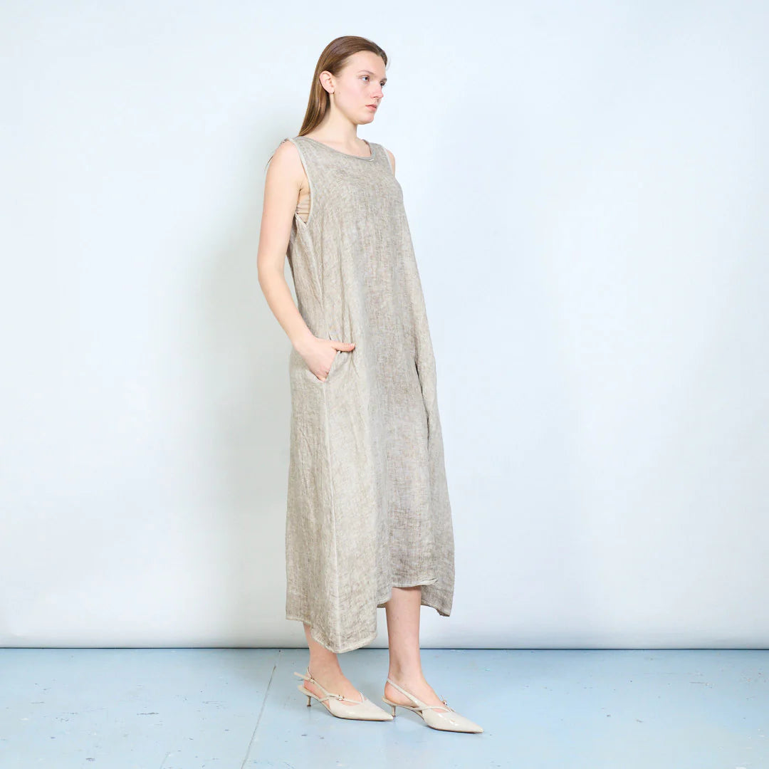 Abito lungo donna senza maniche con linea fluida