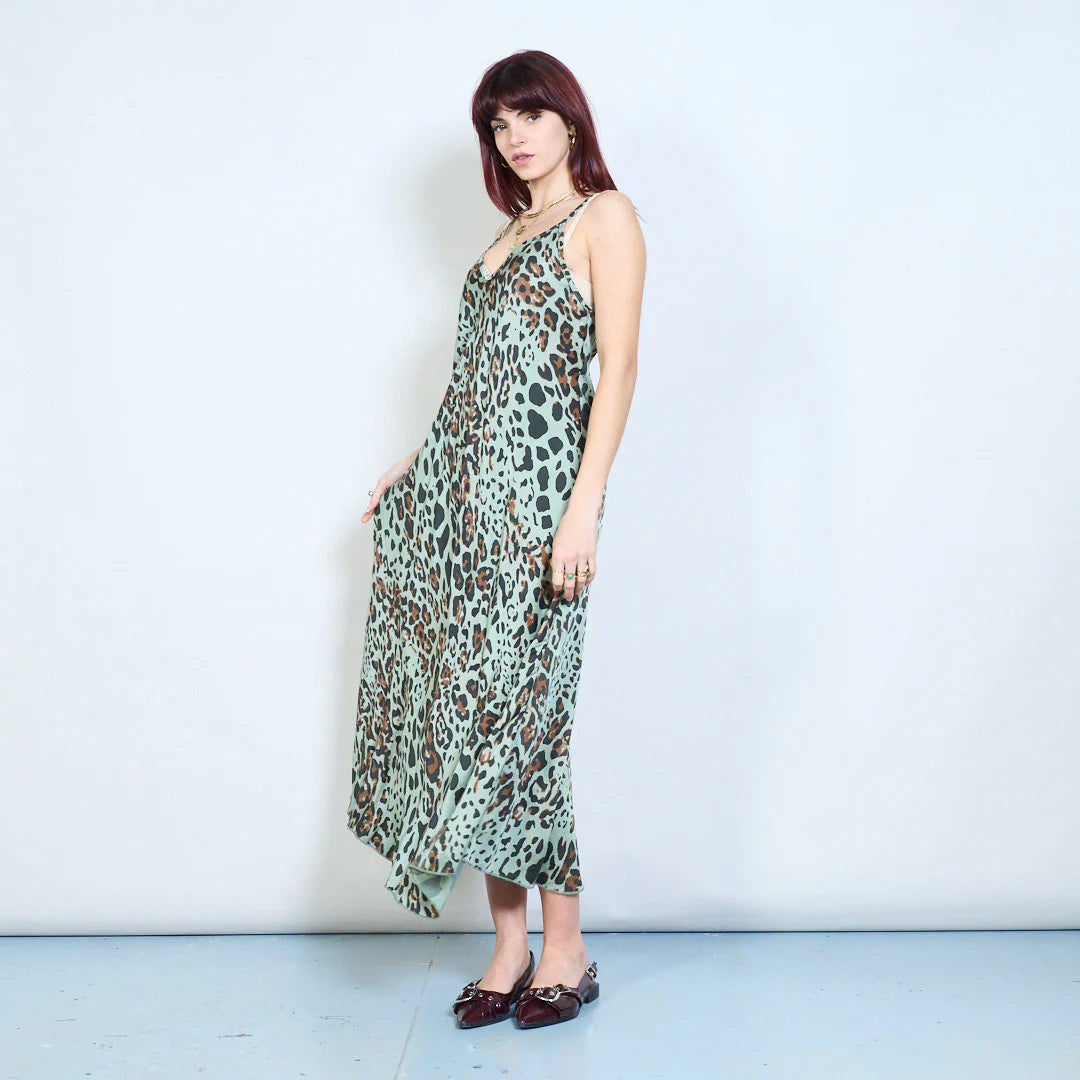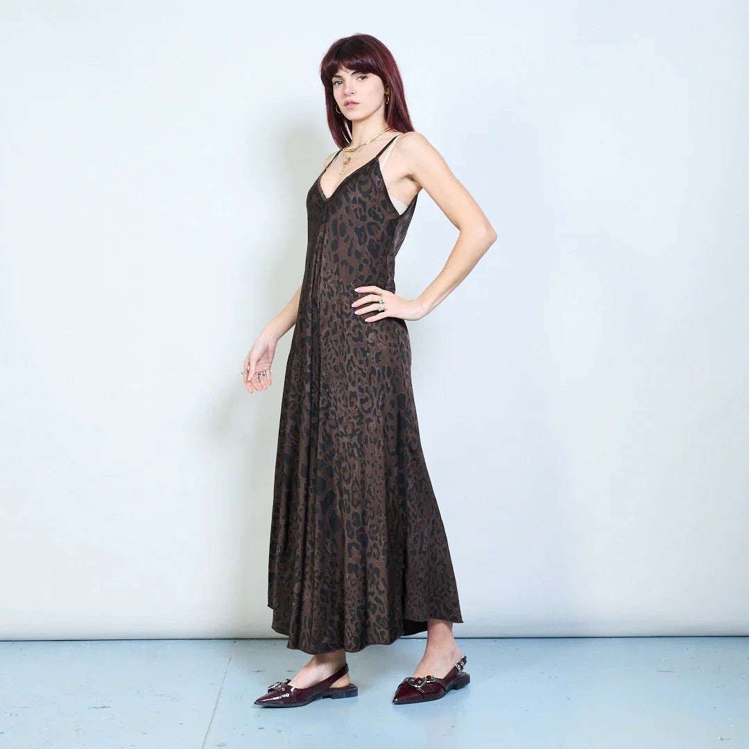 Abito lungo con spalline sottili e stampa animalier