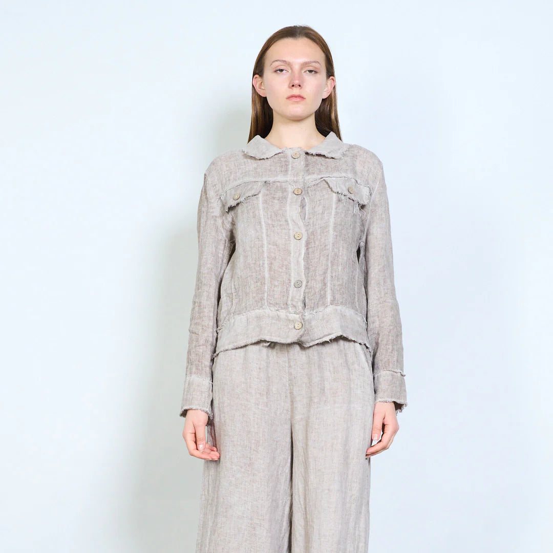 Giacca corta in tessuto naturale con colletto e tasche applicate