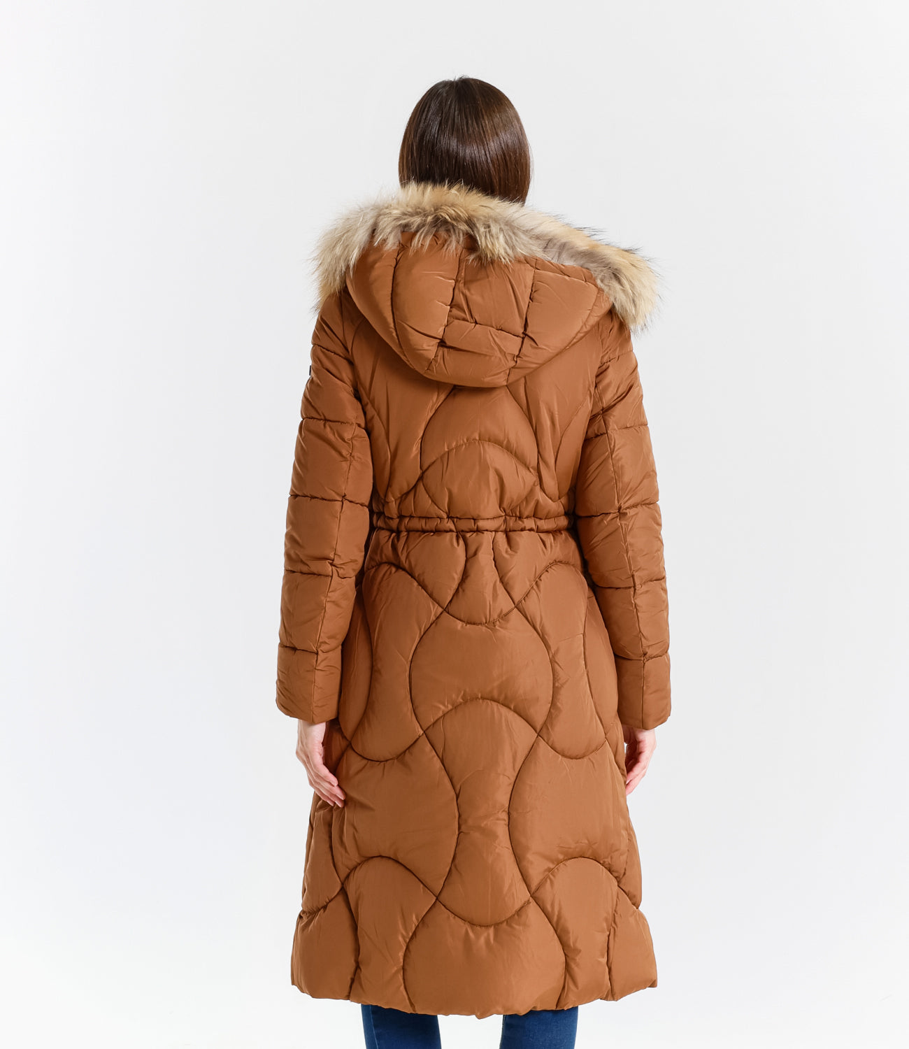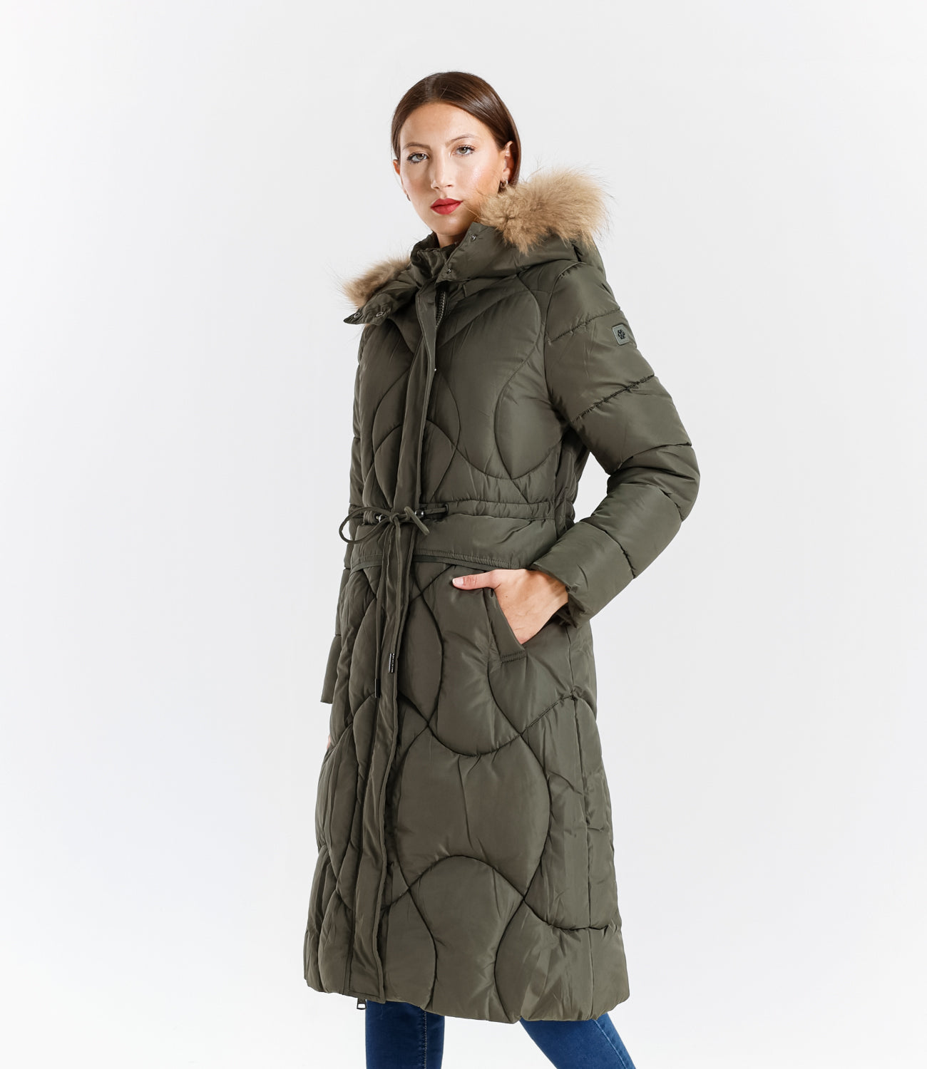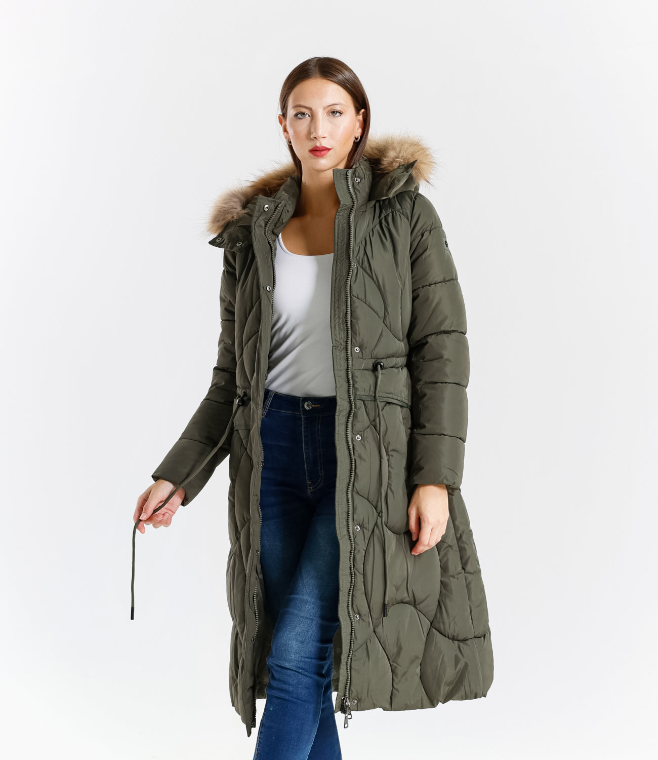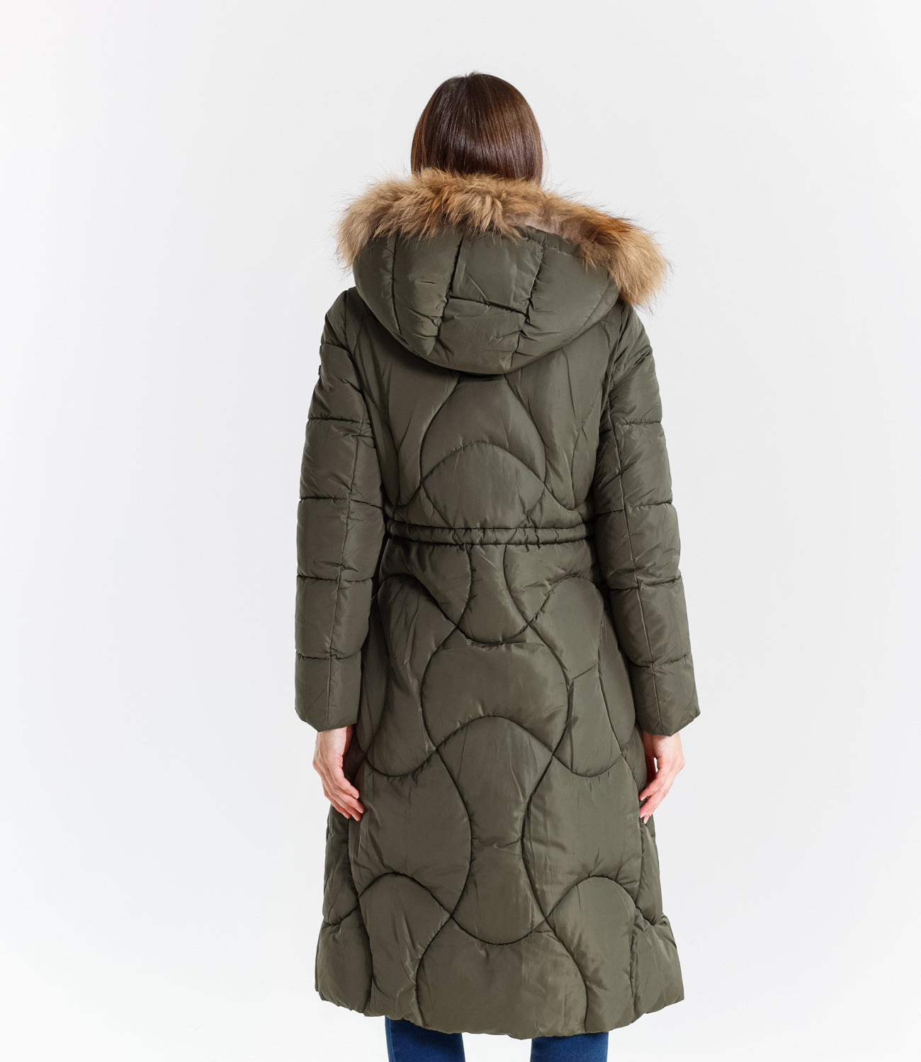 Piumino lungo donna con cappuccio e bordo in pelliccia vera staccabile