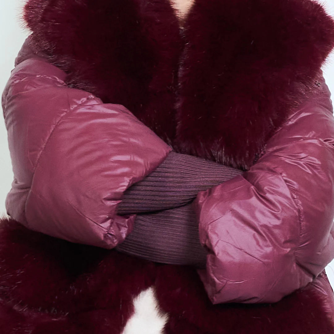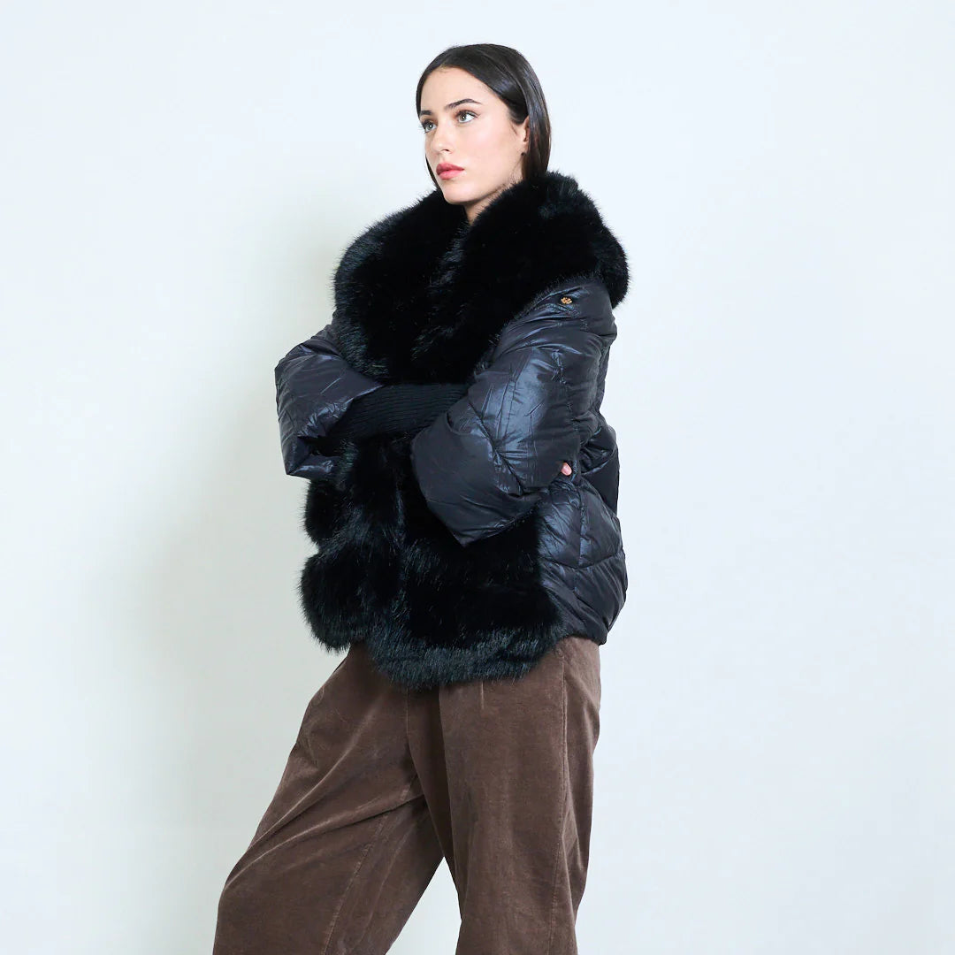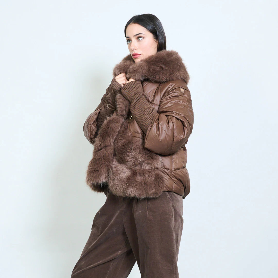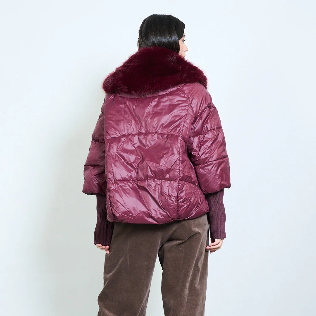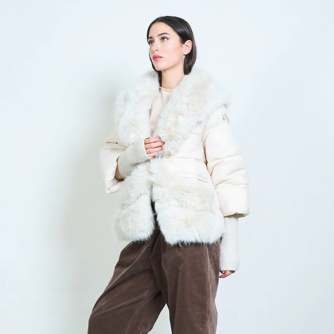 Piumino corto donna con inserti in pelliccia sintetica – Sunnyday